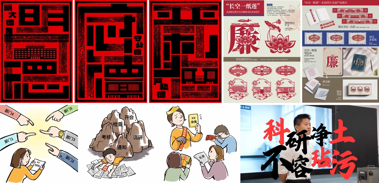 本次大赛以“诚实守信有担当,勤俭修身空天志,齐心奋进新时代”为主题,旨在立足高校实际,突出校园特色,加强校园廉政文化建设,拓展校园廉政文化领域,创建清廉、公正、守纪的高校育人环境。大赛共征集作品126件,其中绘画类作品14件,设计类作品74件,书法类作品13件,微小说作品23件,视频类作品4件,新媒体作品1件,本届新增文创作品14件。经过学校纪检监察机构、员工工作部、宣传部、组织部、校团委等8个部处共同评审,最终评选出一等奖4件,二等奖10件,三等奖14件,优秀奖14件,入围奖14件。